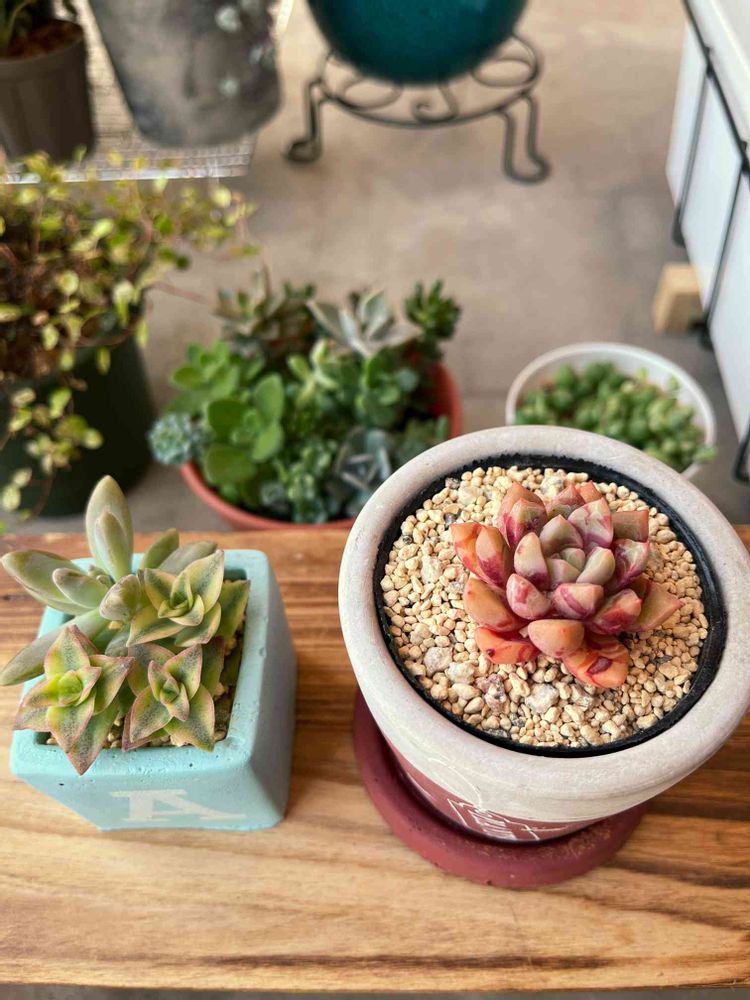 welzoさんで多肉の生産者の方と色々お話しして、赤いカモフラの様な柄の入ったエケベリアを購入しました✨