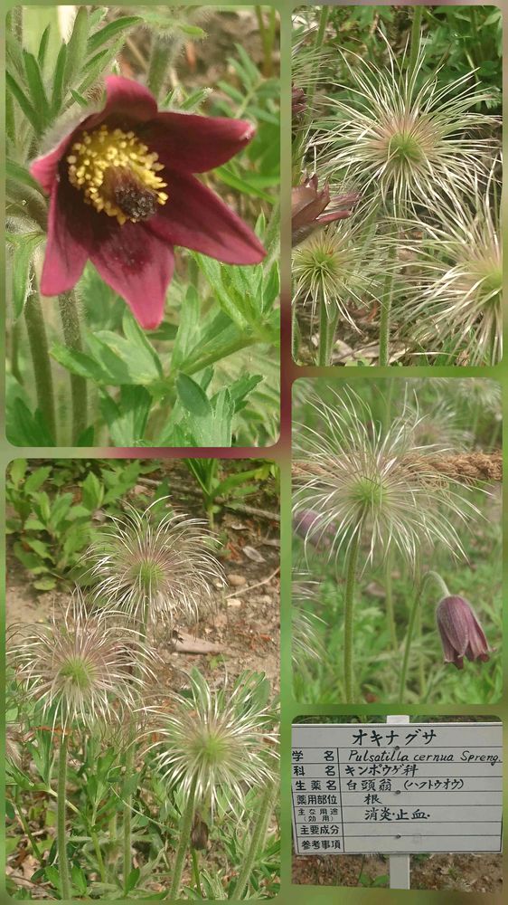 花の後にできる種から伸びる白く長い毛が老人の白髪のようなので、「オキナグサ(翁草)」と呼ばれているそうです。