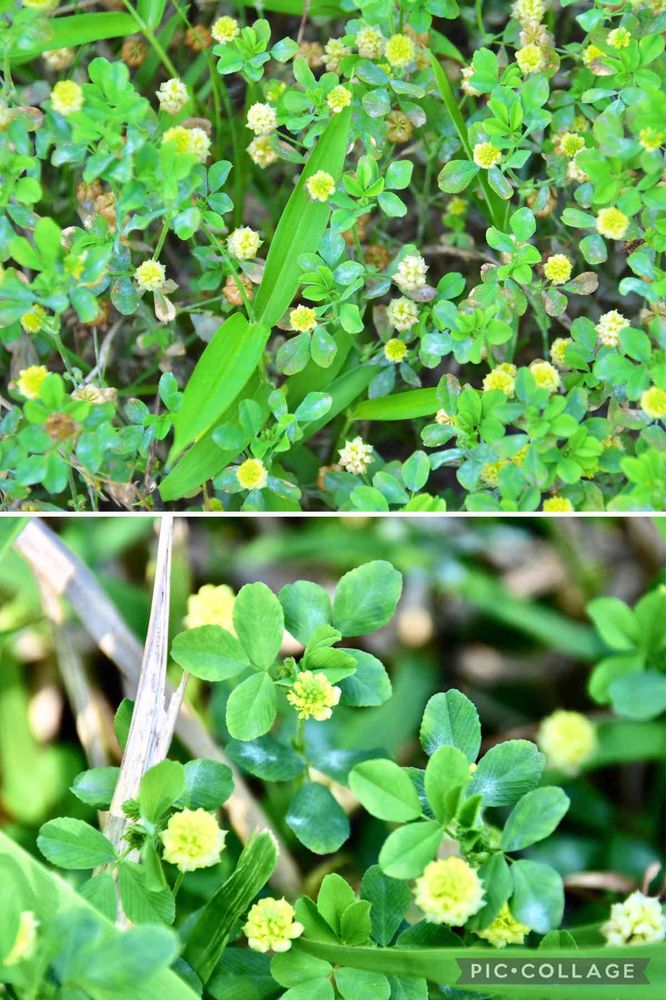 ウマゴヤシと言うのとコメツブツメクサの違い果実で見分けるのを勉強しました👌