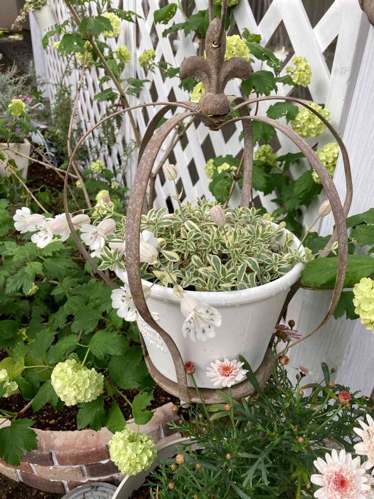 おはようございます🌞去年は地植えして虫食いだらけで全然ダメだったシレネさん。今年は食われないように吊るしました🥰