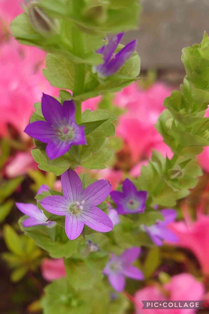 歩道のサツキツツジの中に、小さな小さな8mmくらいの花、キキョウソウがあちこちに顔を出していました!!