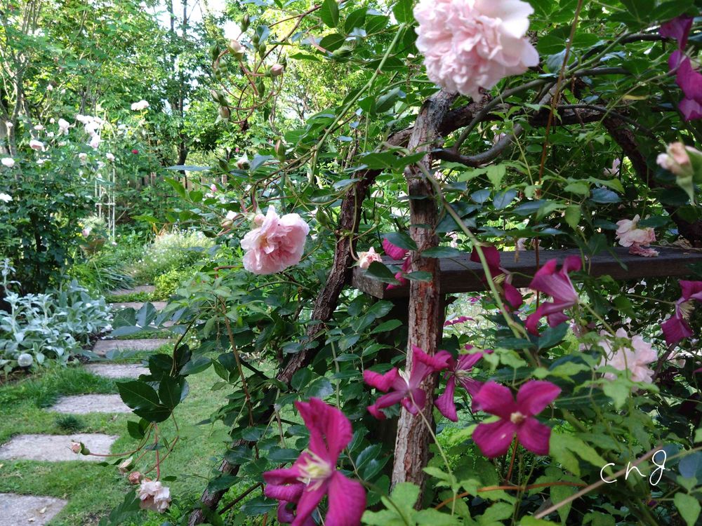 フランソワジュランビル,クレマチスマダム ジュリアコレポン,ウッドデッキの投稿画像