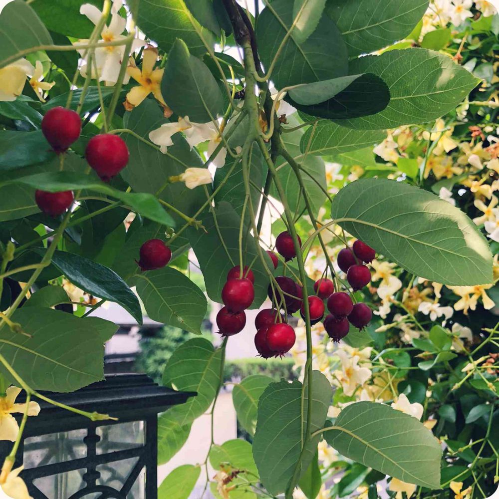 ジューンベリー🍒は、パッと花が咲き、さっと散り、あっという間に実が色づき🐦が食べてく…可愛い時期の展開が早くてなかなか愛でる暇がありません😅