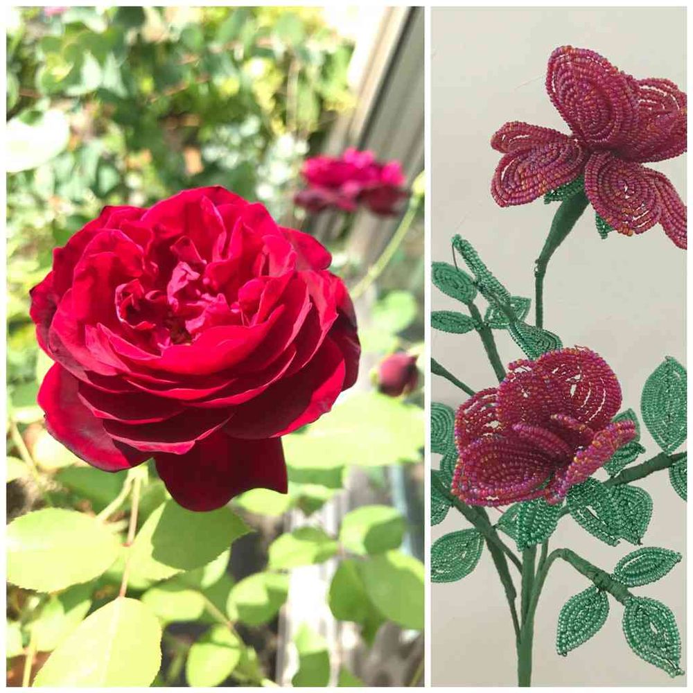 このバラの色に少し似てるかも、と思って形もそれっぽく手直し✨と言っても花びらくねくねし直しただけです。