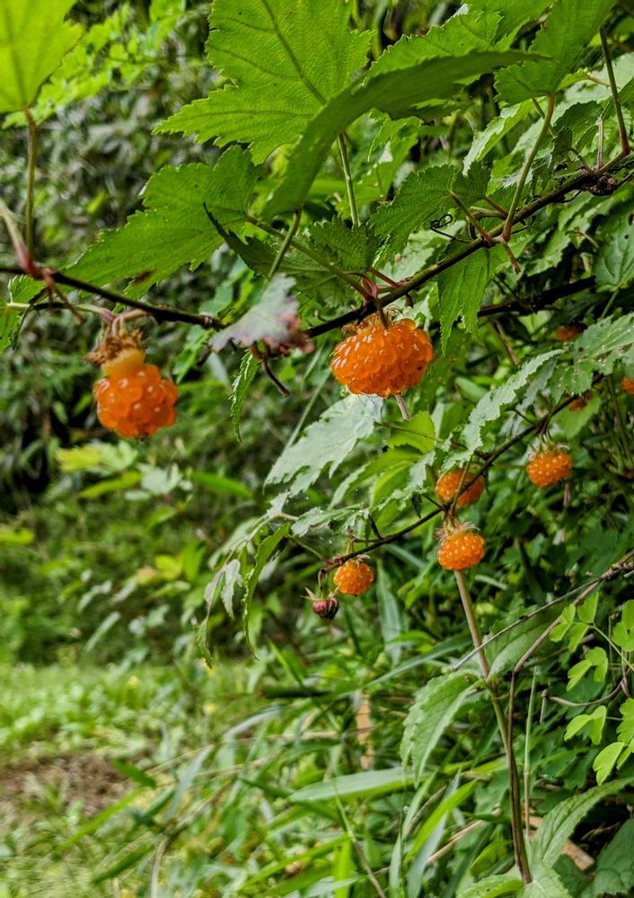 キイチゴの中ではオレンジ色のモミジイチゴが1番甘くて美味しいと思います🧡🌿🧡🌿🧡🌿
