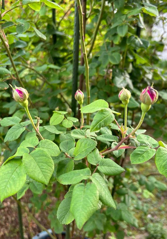 今日の庭pic VOL3 オールドローズ🌹🌹のガーディナルドゥリィシュリーさん。昨年は全然ご機嫌斜めで、咲いてくれませんでしたが,今年はイイ感じに蕾も肥大化しております。期待値大です〜。