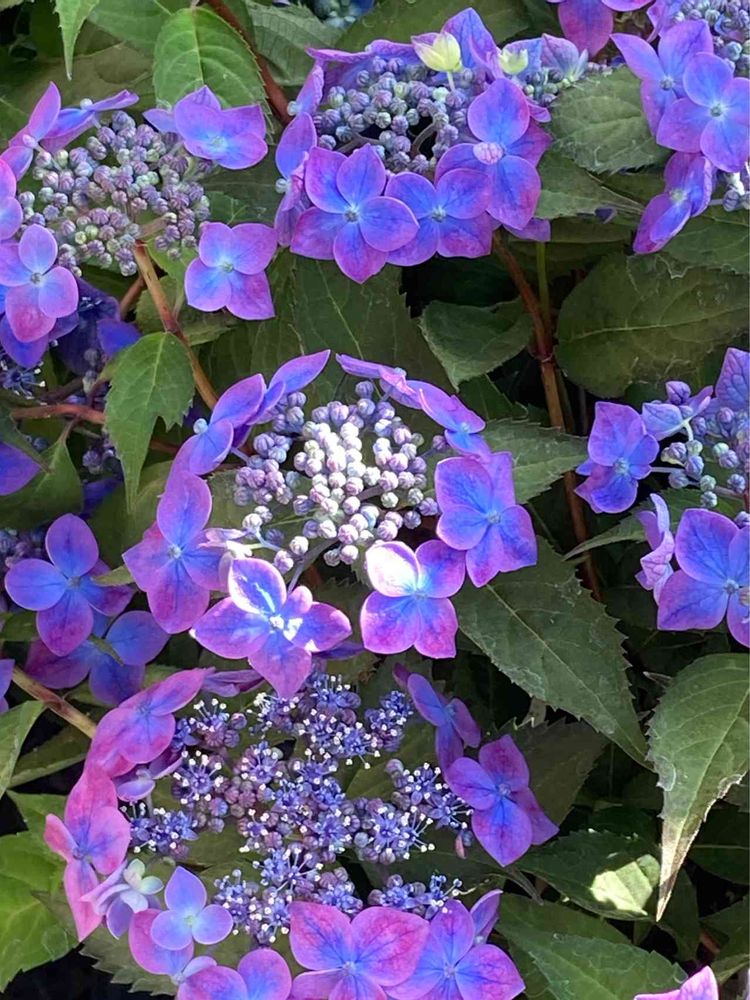 お仕事からの帰り道で、薄紫の紫陽花💜🍃、陽に当たって綺麗に咲いていました