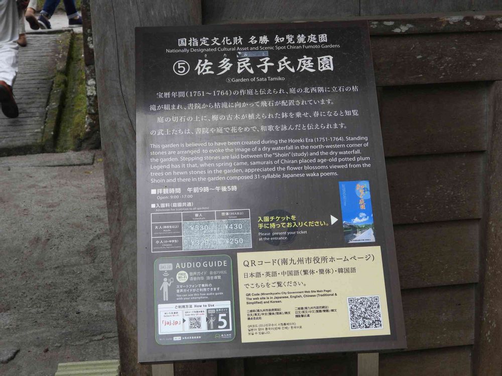 滝が組まれ、書院から枯滝に向かって飛石が配置されています。 庭の切石の上に、梅の古木が植えられた鉢を乗せ、春になると知覧 の武士たちは、 書院や庭で花をめで、和歌を詠んだと伝えられます。