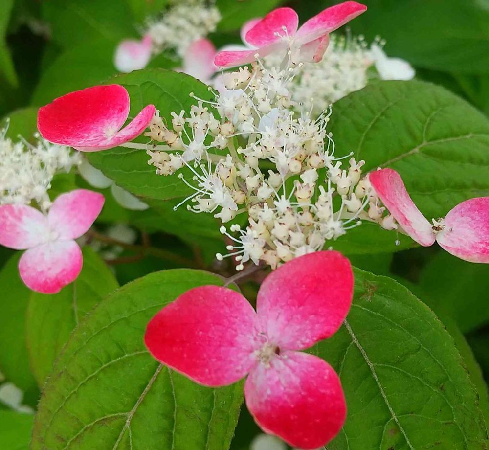 ヤマアジサイ『紅くれない』が名前の通り紅く染まって来ましたよ🥰