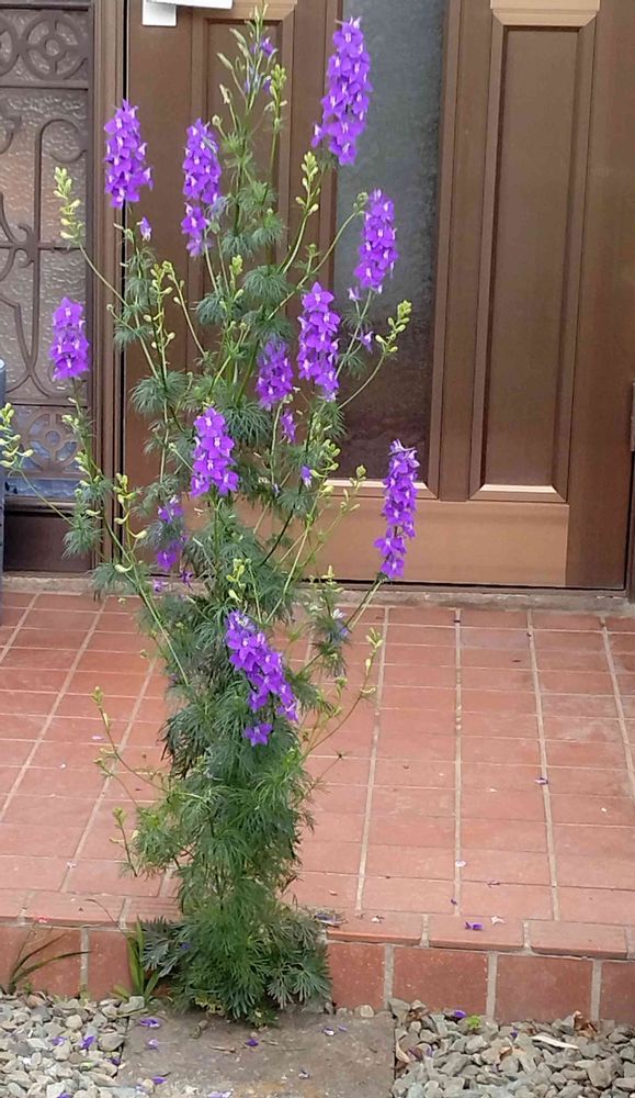 やや狭めの玄関周りには、他にも何株かのラークスパーが!😆😆