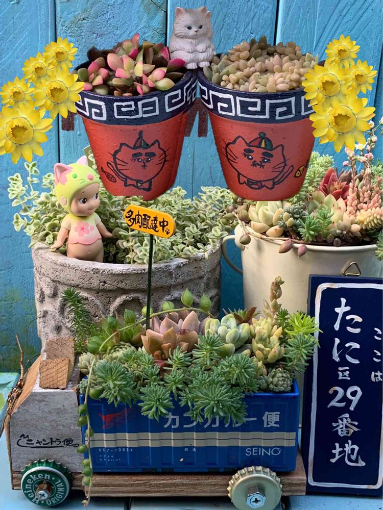 ネコのソニエンくんってすごいかわいいですよね〜僕もその子持ってます〜多肉ちゃんたちとお色がマッチしてますね