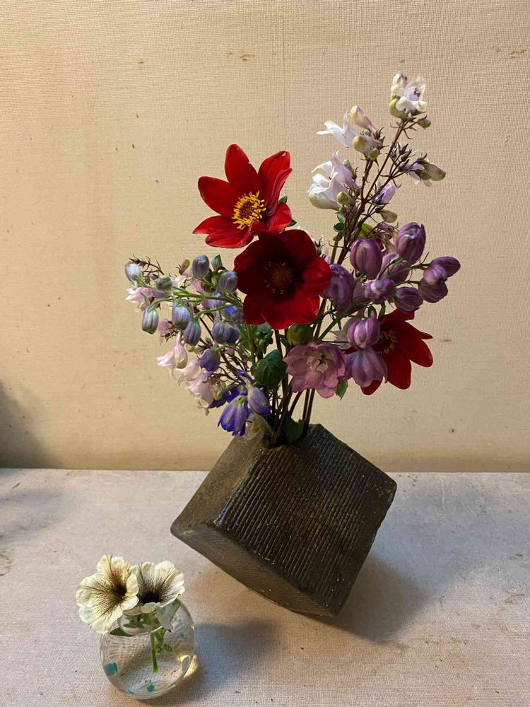今日は庭のダリア、ペンステモン、デルフィニウムを入れました。