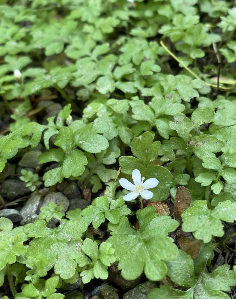 お寺の砂利に低く葉をだしちっちゃい白い花咲かせていました