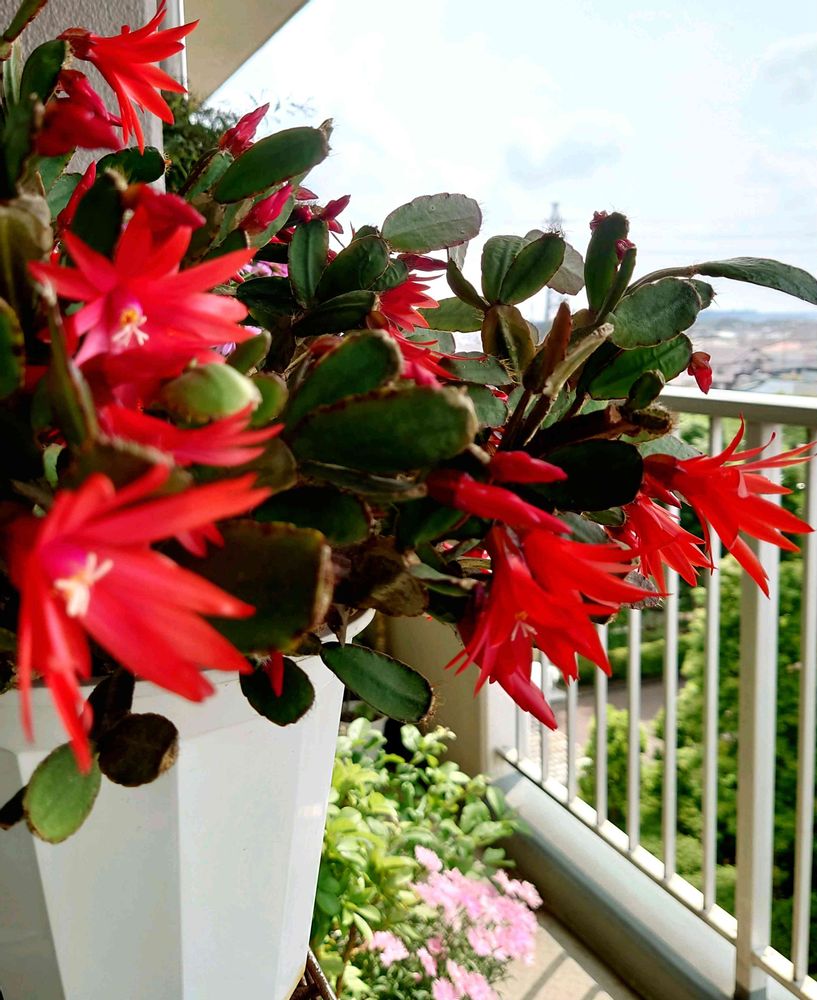 しむちゃんさんのバルコニー/ベランダ,イースターカクタス,赤い花の投稿画像