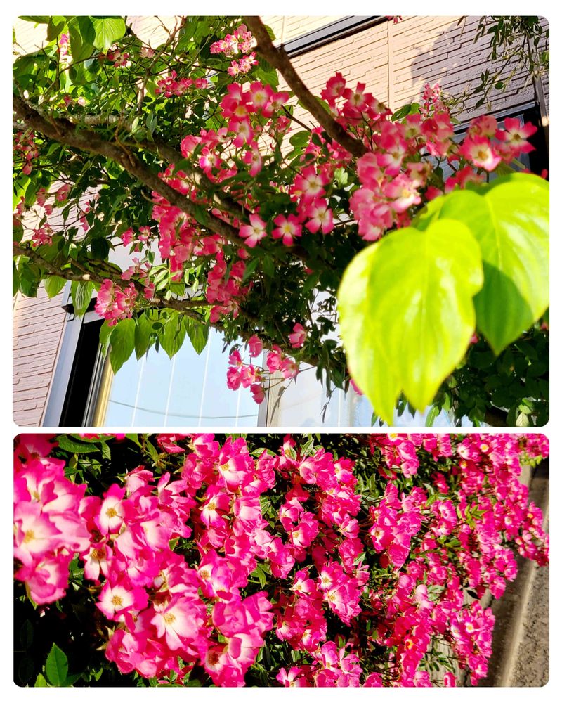 可愛いバラ🌹が道路側に長く咲いて又上に伸びる🌹のアーチが素敵でした🤩