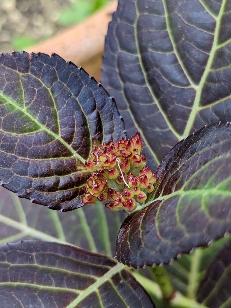 紫陽花のミスサオリ。昨年見切り品からお迎え😚蕾は、2つだけだけど、とっても楽しみ〜