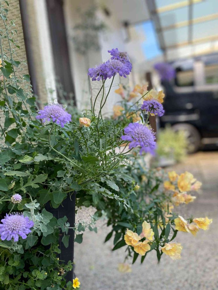 この寄せ植えは 後ろに白のストックがあって咲き終わり シルバー系のリーフもモサモサあるのが全体像で全てが思いのままに伸び過ぎて お花が終わればまた変えますね🍀