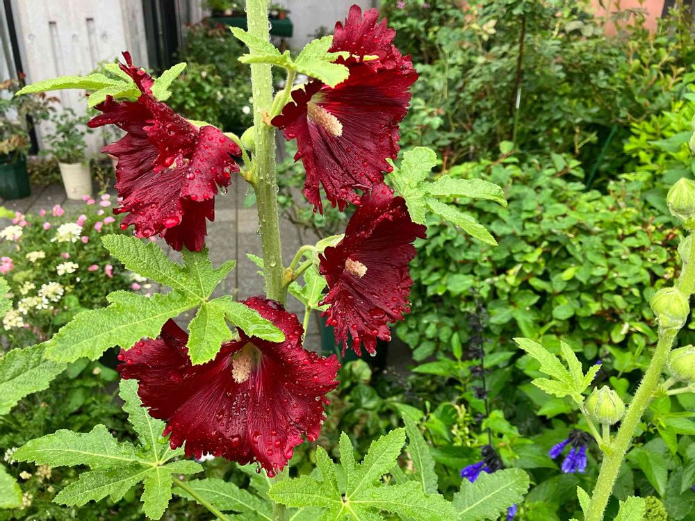 ワインカラー🍷のタチアオイさん今年も咲きました(*>∀<)ノ♪