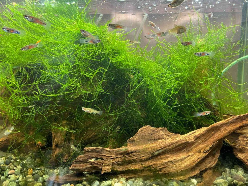 自分でつくった流木とそれに張り付く水草はウィロモスです。