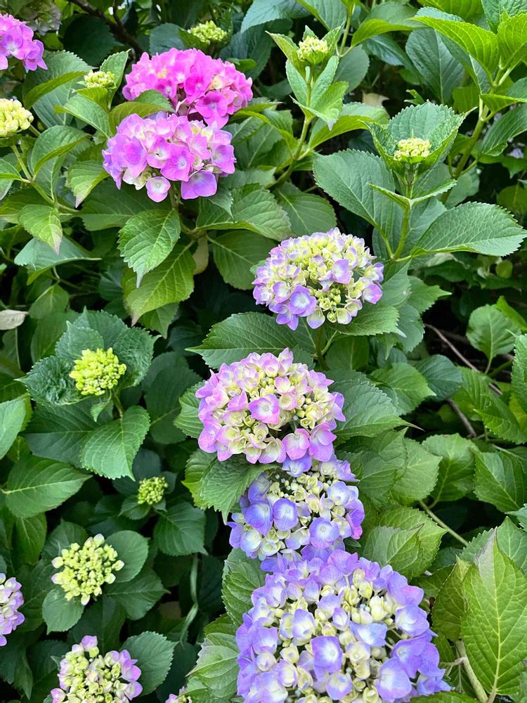 同じ株でも部分によって花の色が違うのは、根から送られてくるアルミニウムの量に差があるためだそうです
