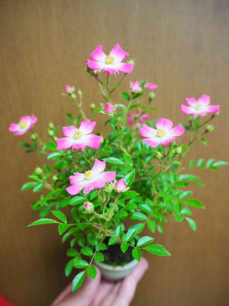 こんなに小さな鉢に、枝が一杯で可憐な薔薇が沢山咲いているんですから🌹