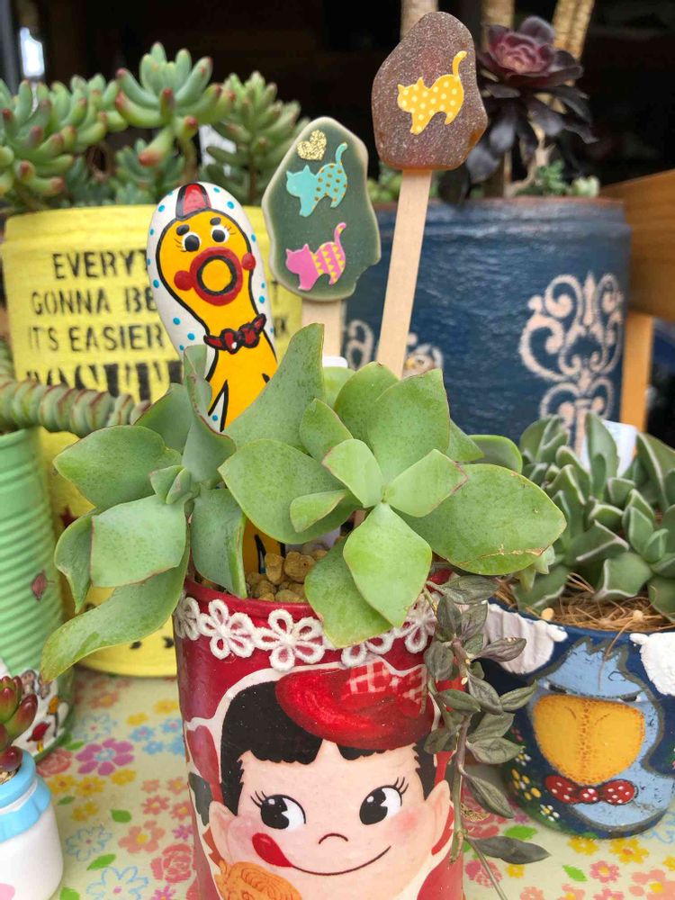 ペコリメ缶色褪せもなくて私の多肉棚でニッコリしてくれてます🥰