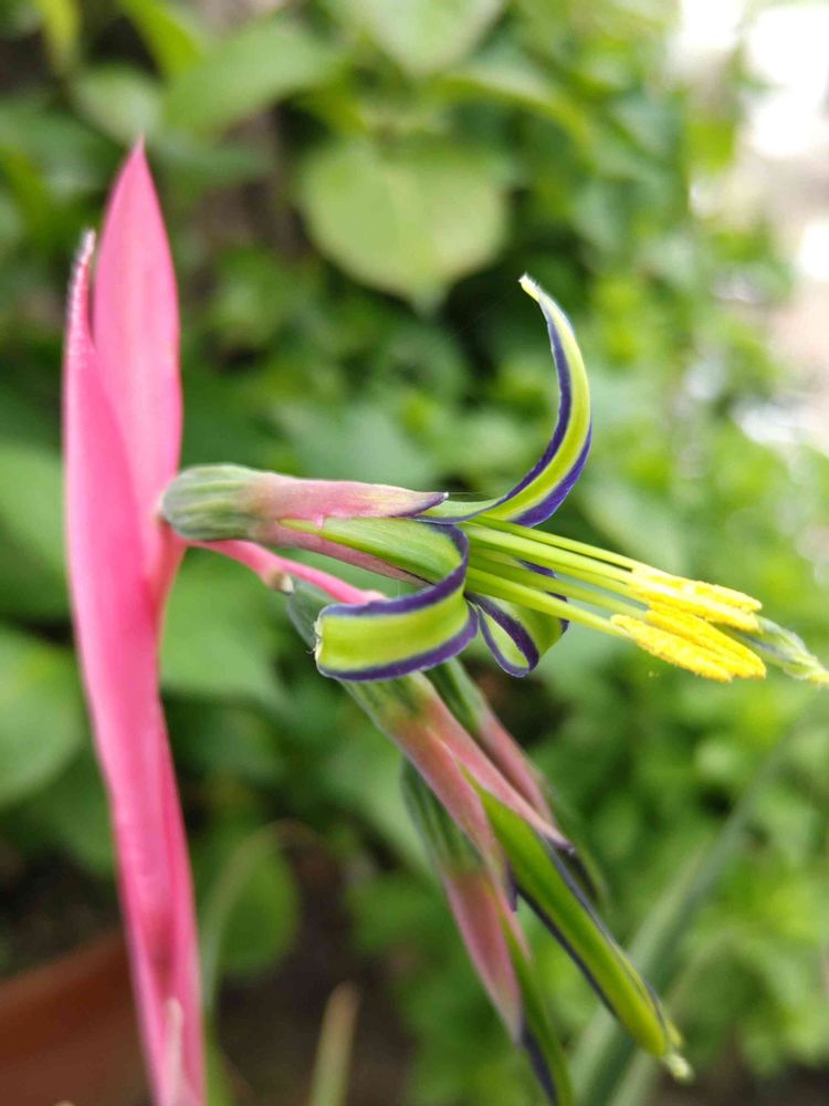 ヨウラクツツアナナス(女王の涙)のお花がやっと少しずつ変化してきたよ❣️
