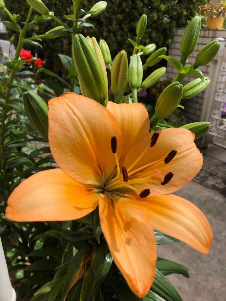 毎年、庭の裏の方で咲いてたオレンジのスカシユリを今年はプランターに植えてアプローチで咲きました🧡