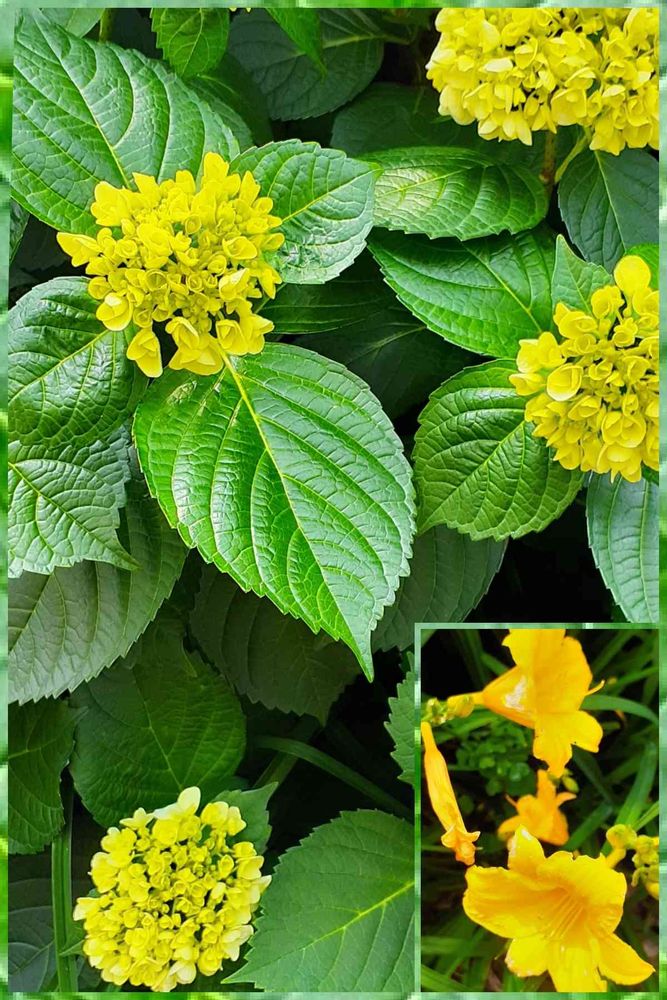 この黄色いアジサイ、凄いですね‼️もちろん初めてです‼️青や白の中に多少黄色が混ざったのはありますが、黄色一色とは・・・😊