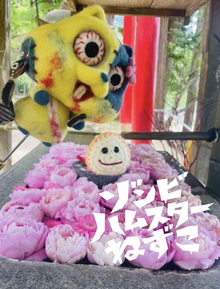 お花が大好きなハムスター〝ねずこ〟です🧟♀️🐹 絵本『ゾンビハムスターねずこ』読んでみてください💕 生息地は徳島県です❣️