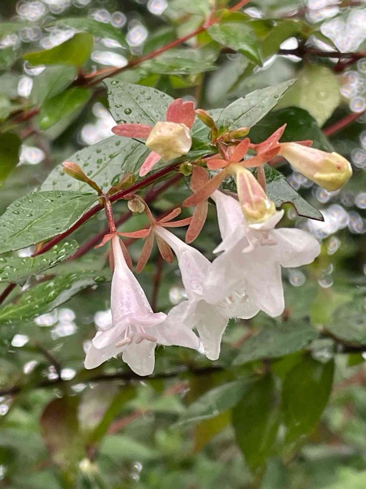 写真のアベリアは雨に濡れて、淡く綺麗な花ですね(^-^)v