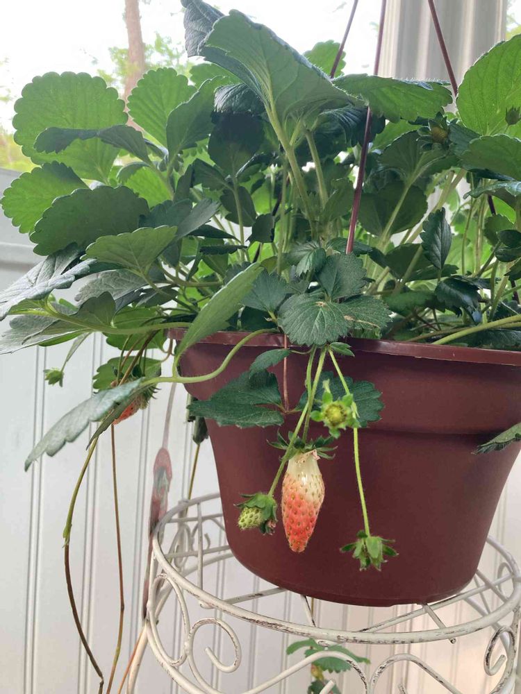 苺の実が色付いてきました。味見が楽しみです😊つづく
