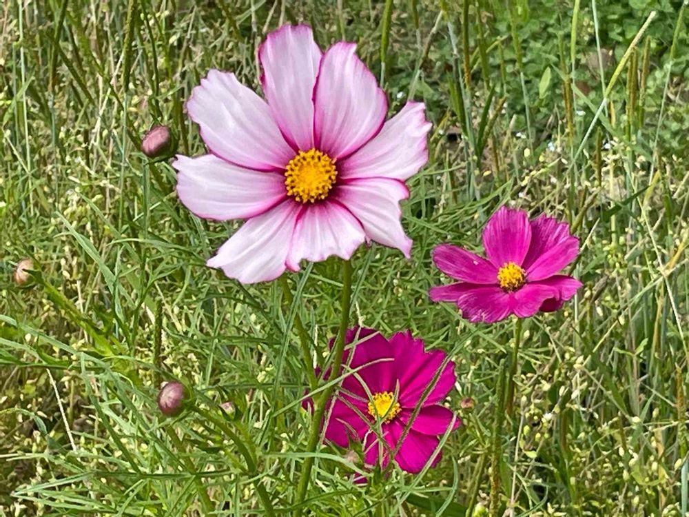 咲き終わったネモフィラの花壇に、所々コスモスの花が咲いていました🌸