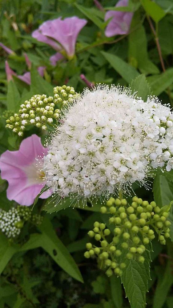 昼顔のお花も咲き始め…真白なシモツケのお花に…思わずパシャっと🤳…