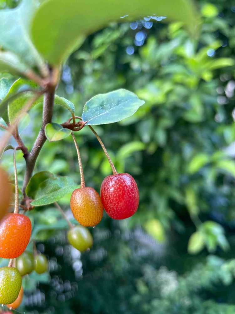 グミの実は甘酸っぱく、やや渋みがある味です。渋みの原因はポリフェノールの一種、タンニン。未熟なものは渋みが強い。