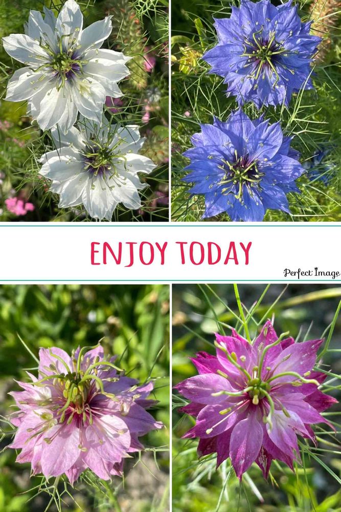 畑の花畑に咲いているニゲラさんたち💙🤍🩷
