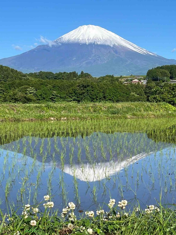 お出かけ先,新雪,逆さ富士と白詰草の投稿画像