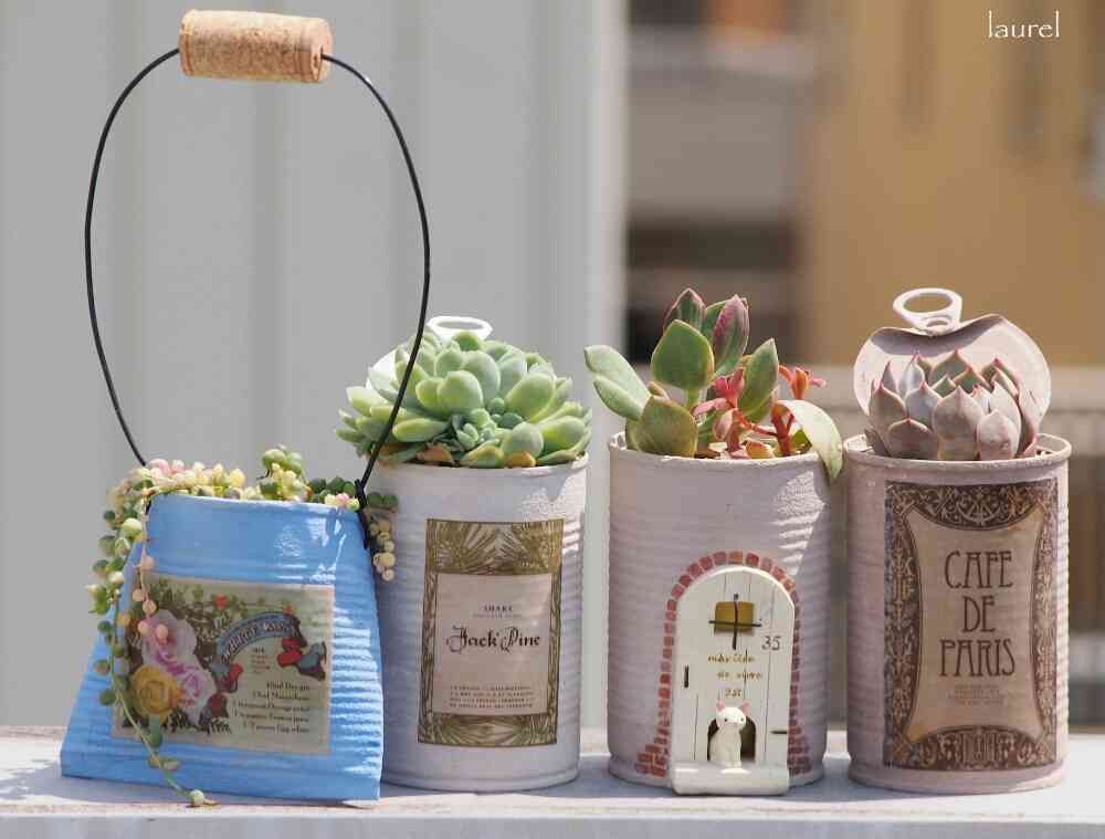 この前作ったリメ缶に植えたよ🎵ლ(╹◡╹ლ)