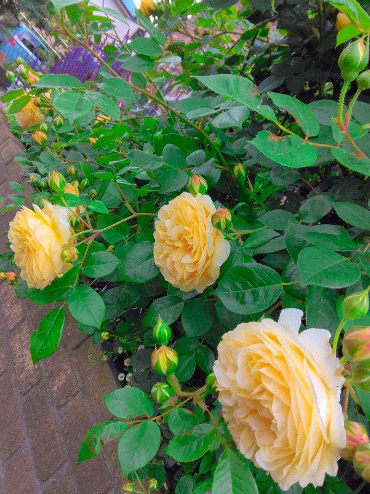 薔薇と宿根草の花壇🌹の薔薇のティージング・ジョージアが咲く風景です🌼🌼🌼😊