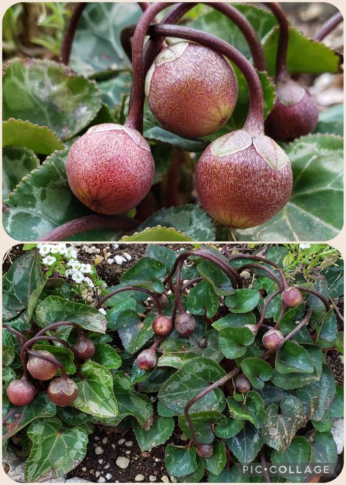 ガーデンシクラメンの花ガラを放置しておいたら、コロコロの種?果実?が、たくさん。