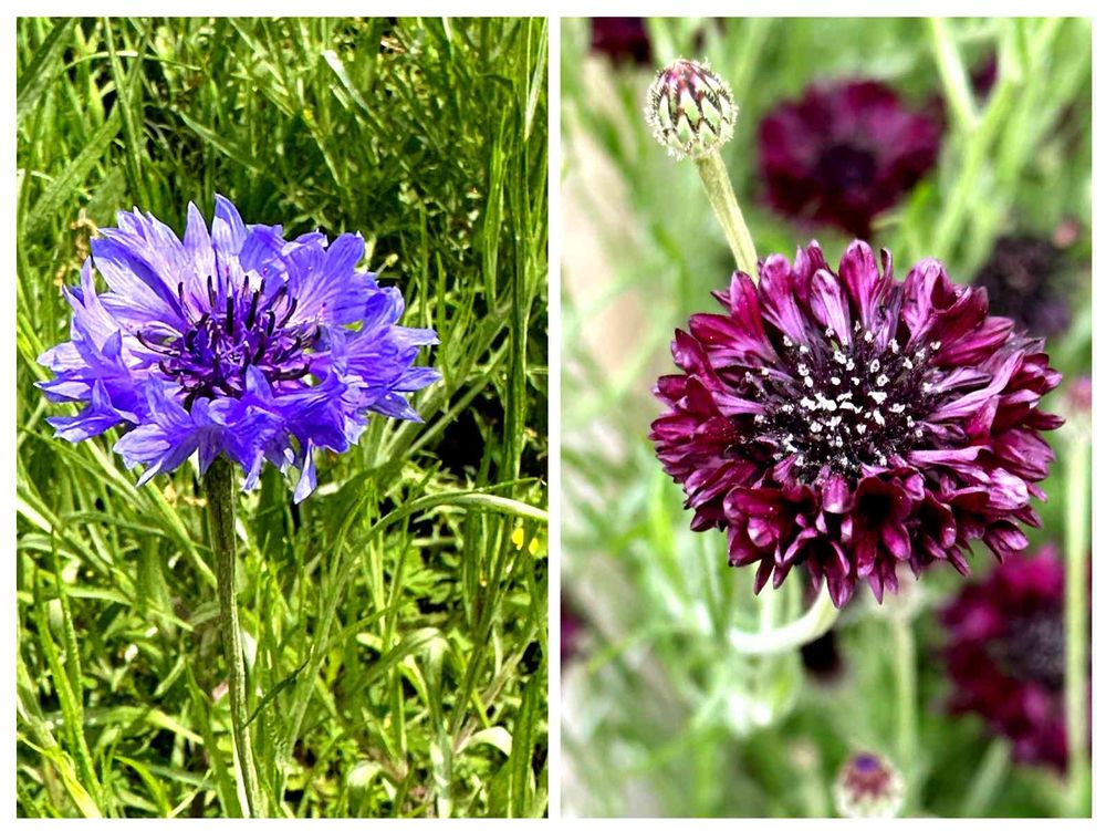 ブルーと深紅の矢車菊、コラージュしてみました💙♥️
