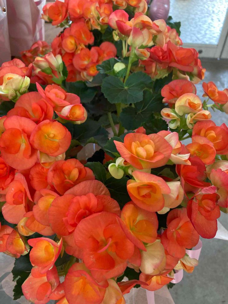 このオレンジ色の鉢植えはまるで花束のようだ😅