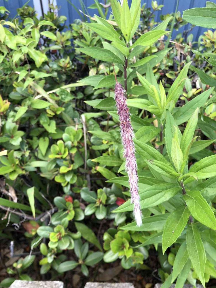 道端の植え込みの中から顔を覗かせてました。10センチほどの薄紫色の花序でふわふわの優しい触り心地です。