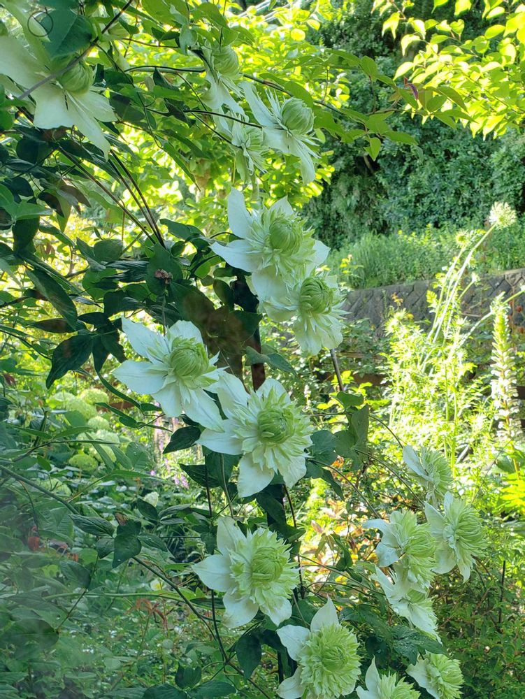 クレマチス 白万重,ライムグリーン,咲いてくれてありがとう❤の投稿画像