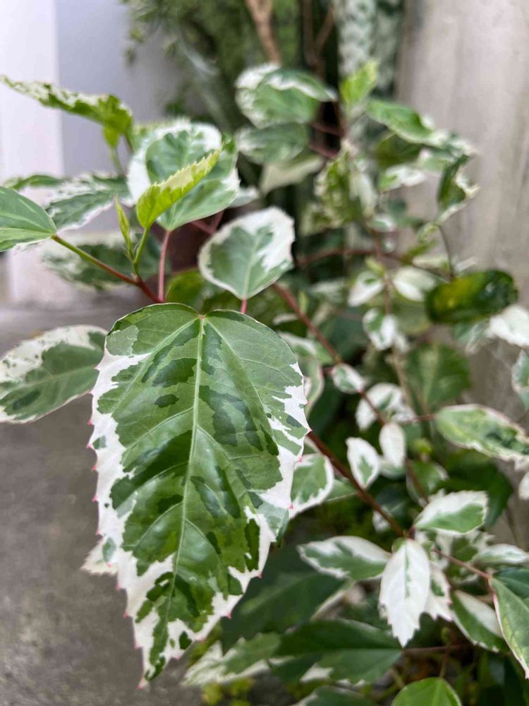 ハイビスカス🌺斑入りの葉っぱもあるのですね😍