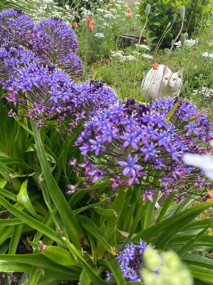 素敵なお花💜🌿と猫ちゃんのコラボ🐈️いいですね🥰✌️