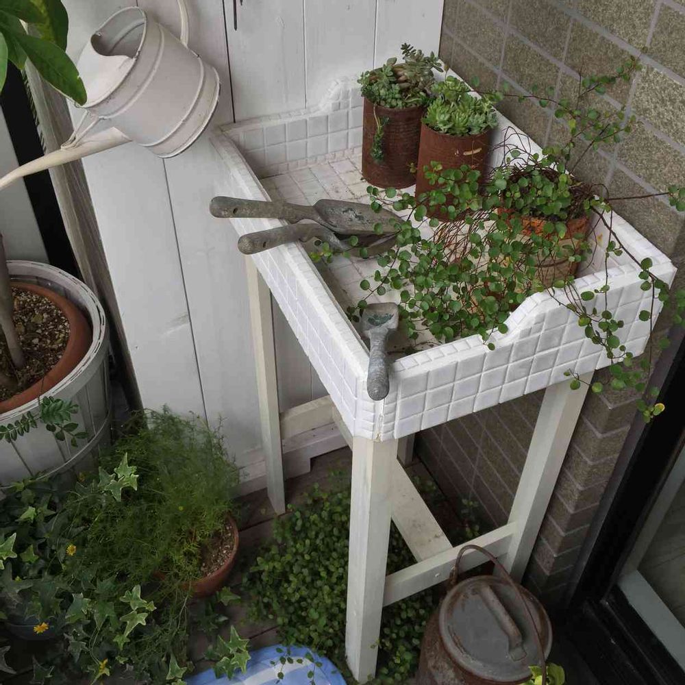 端材と余ったタイルで作った「ガーデンシンク風」です😄