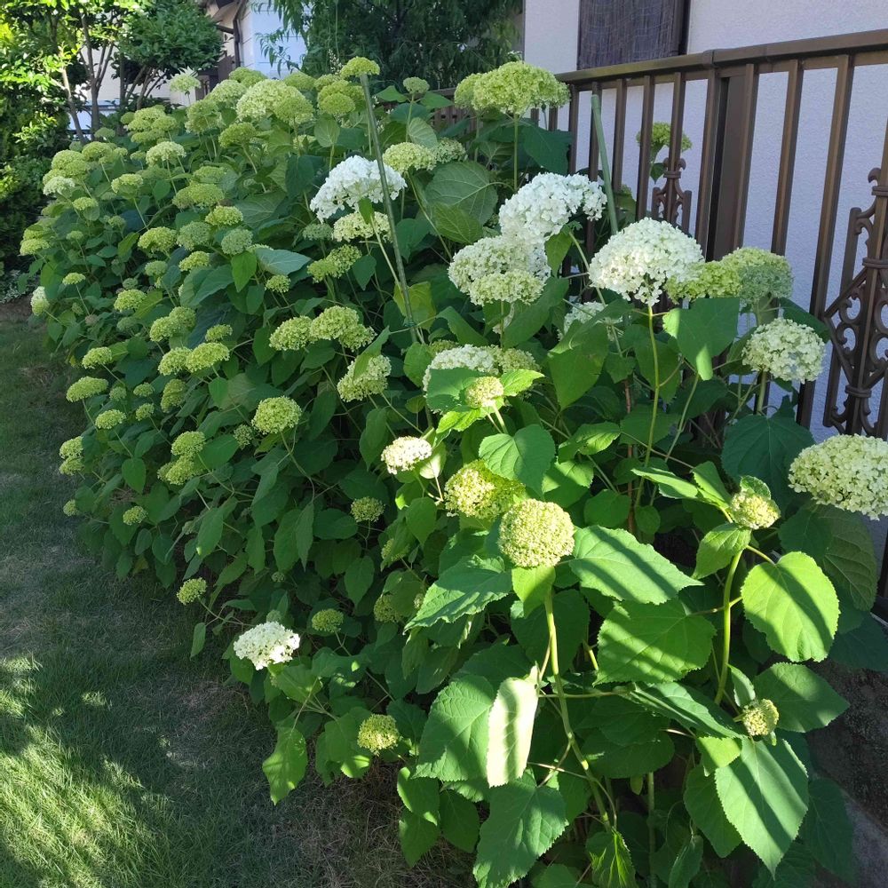 今年もアナベルがたくさん花をつけてくれました。日に日に、白く大きくなっています✨去年は咲きそろったところで、雹害に…😱どうか無事に咲き進みますように…🙏