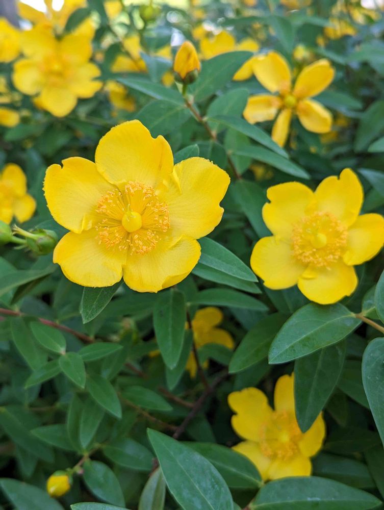 キンシバイは中国原産で、和名は中国名の「金糸梅」に由来し、これは5枚の花弁を梅に、長く突き出た雄蕊を金の糸にたとえたものです🤚