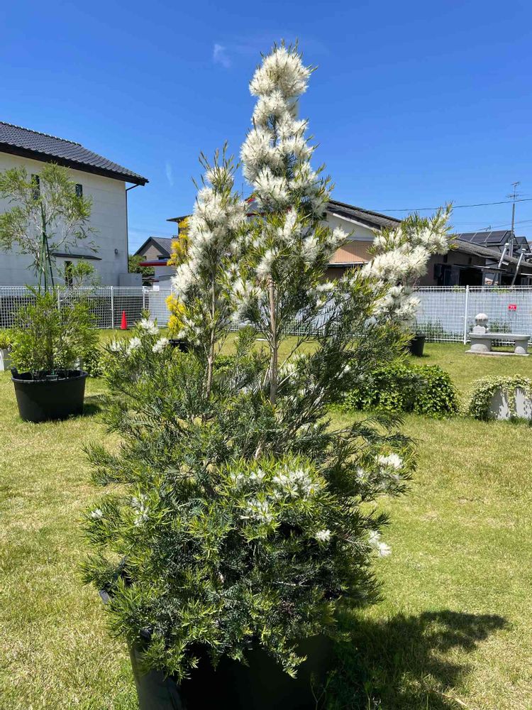 オーストラリア原産の常緑高木です。初夏に白色の花を付けます。ティーツリーオイルとして医薬品や食品に用いられます。丈夫で育てやすい種です。